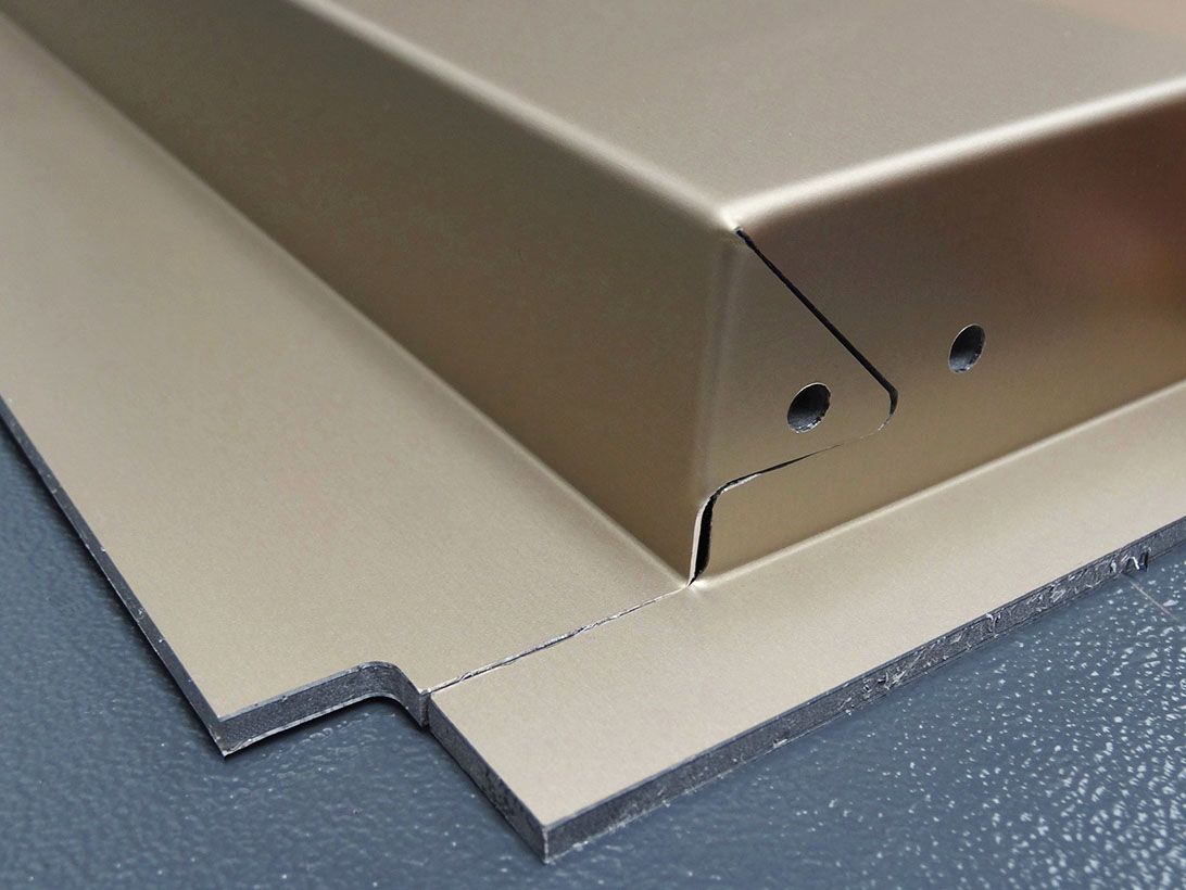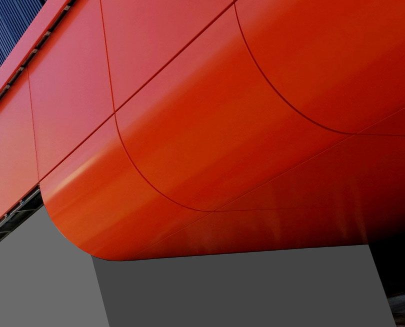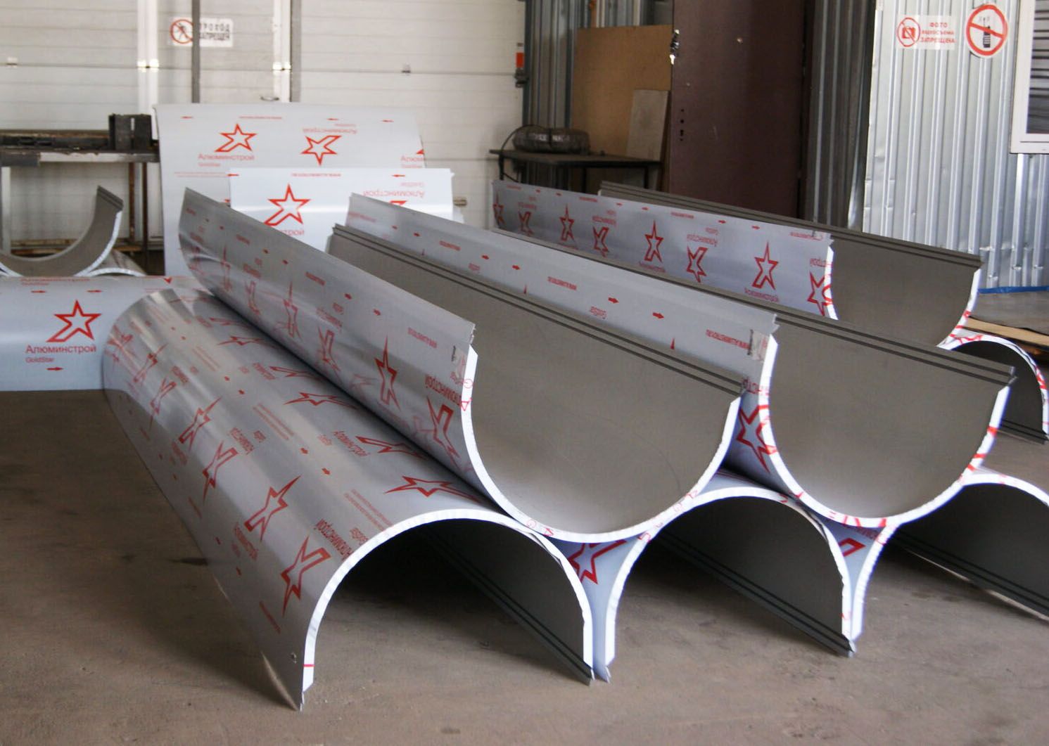 Фрезеруются панели для облицовки стел и навесов на АЗС. Иногда панелям необходимо придать изгиб по определенному радиусу. Все это мы делаем на своем оборудовании.